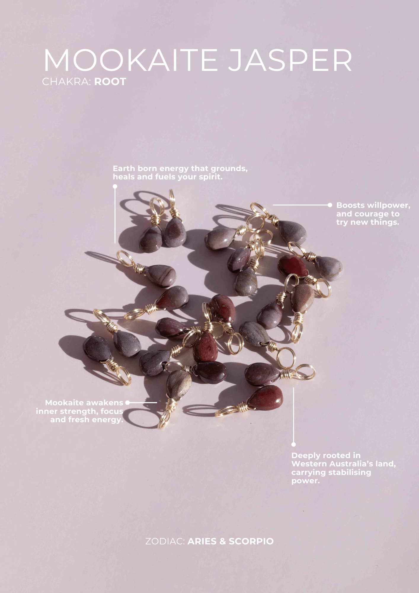 Mookaite Jasper, mined in Western Australia, is a grounding crystal that sharpens focus, supports inner healing, and helps you move through life with clarity and purpose