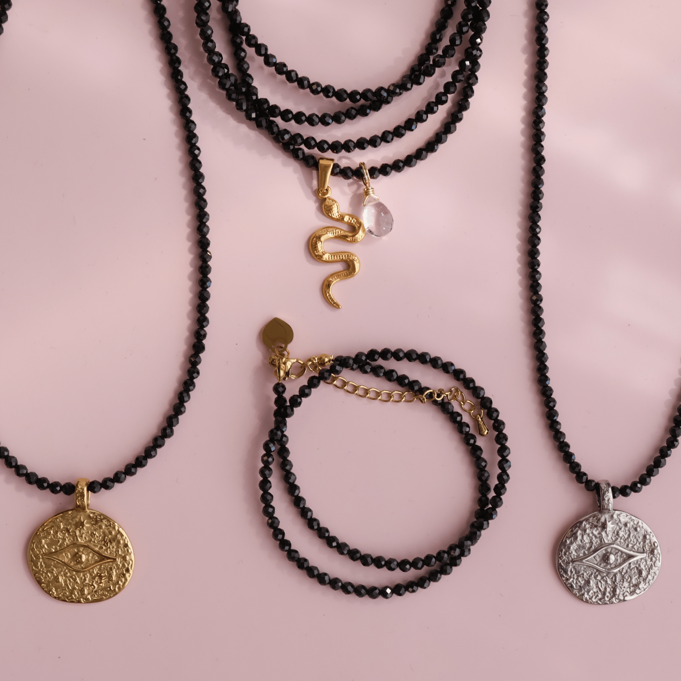 Black Spinel is your energetic shield - here to block out negativity, dissolve inner doubt, and reconnect you with your power. A deeply grounding crystal, it works to detox the mind from fear-based thoughts and cut ties with energy that no longer serves you. It’s for those moments when you need to stand strong, protect your peace and move forward with courage.Wear it as your daily armour, because your energy is sacred.