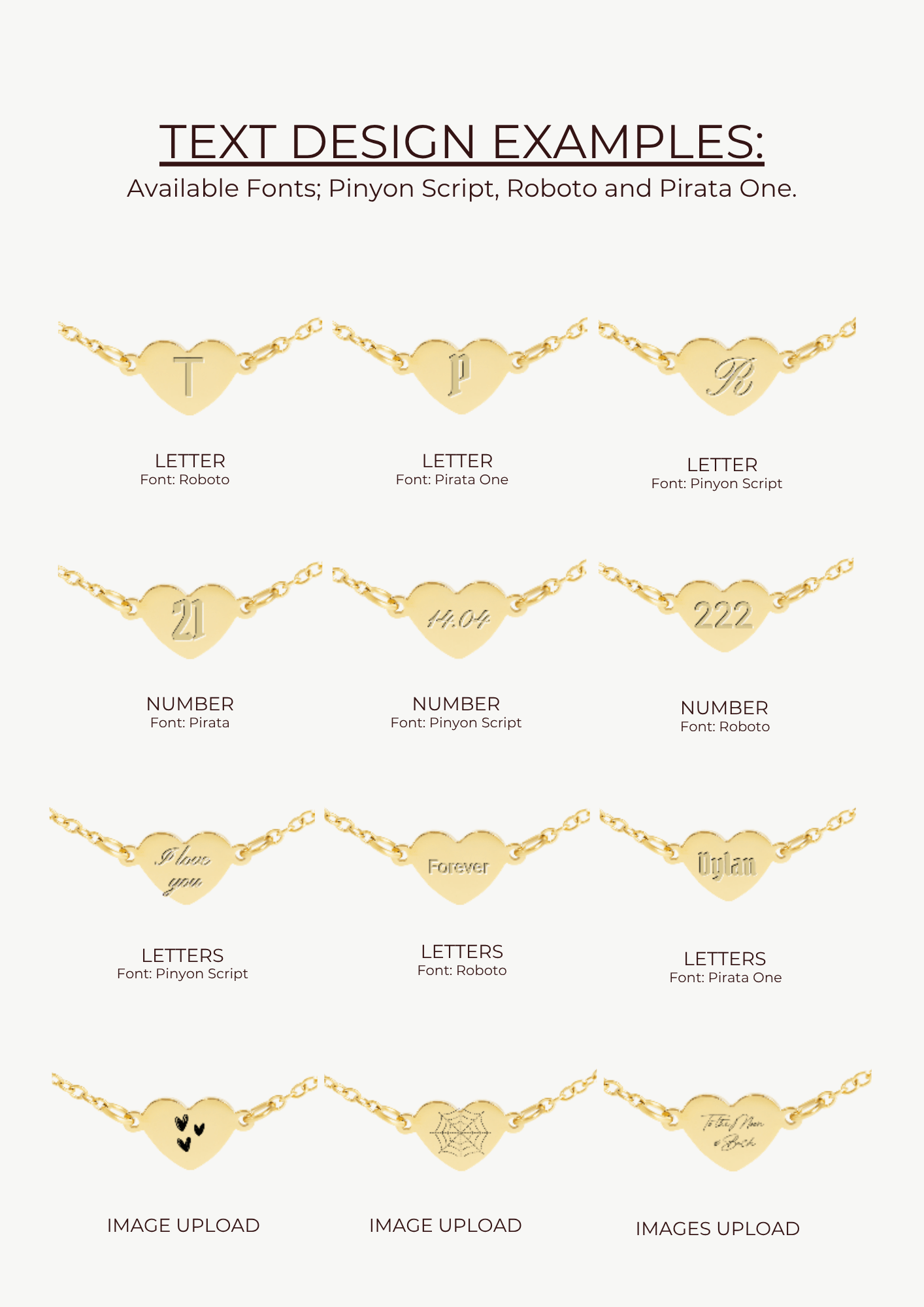 You can engrave simple line images on your jewellery, such as minimalistic designs or basic outlines. Highly detailed or shaded images may not engrave clearly.