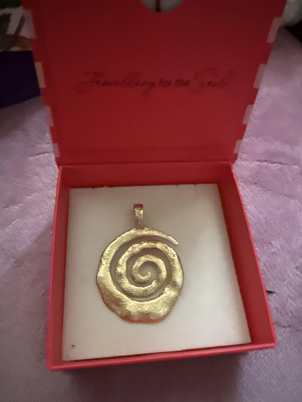 Funky spiral , love the packaging, the ritual & solid feel of this pendant with a bale to fit larger sized beaded necklaces!