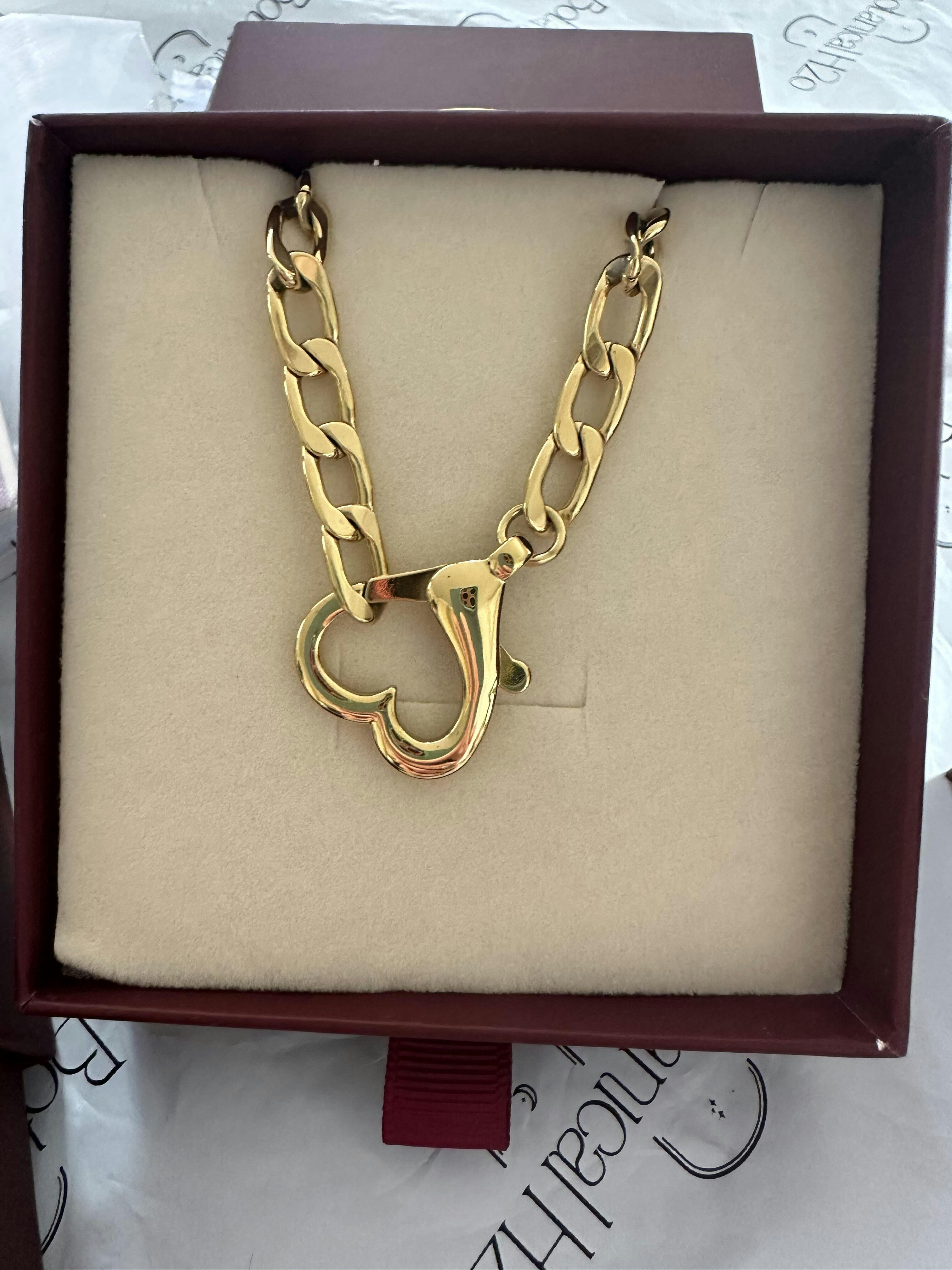 Great quality, love the thickness & weight of the chain, the heart clasp is gorgeous, especially with the 3 gem droplets attached. The only downside for me is the 18.5in is not long enough for me as a plus sized girly but this is a me issue & I still adore it!!