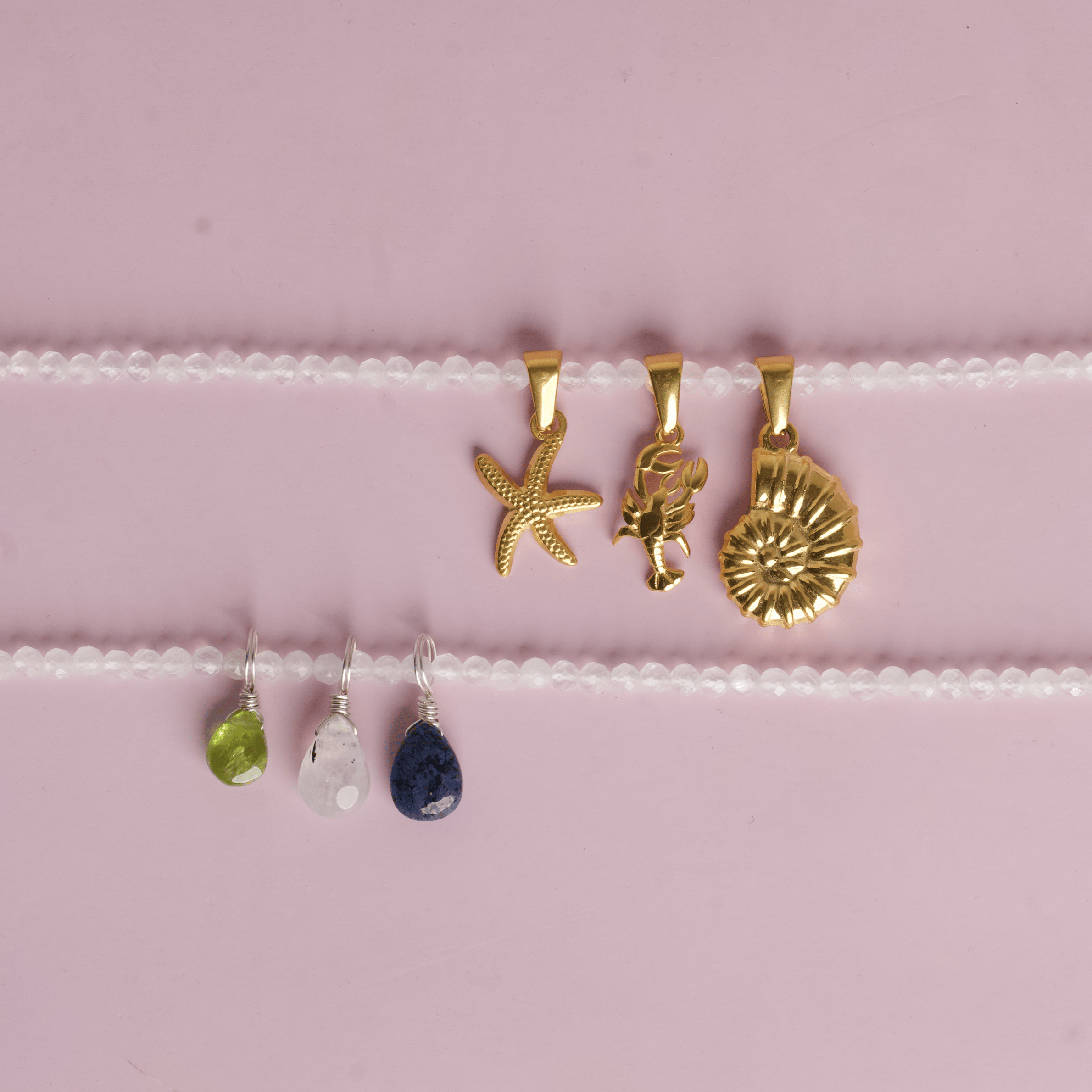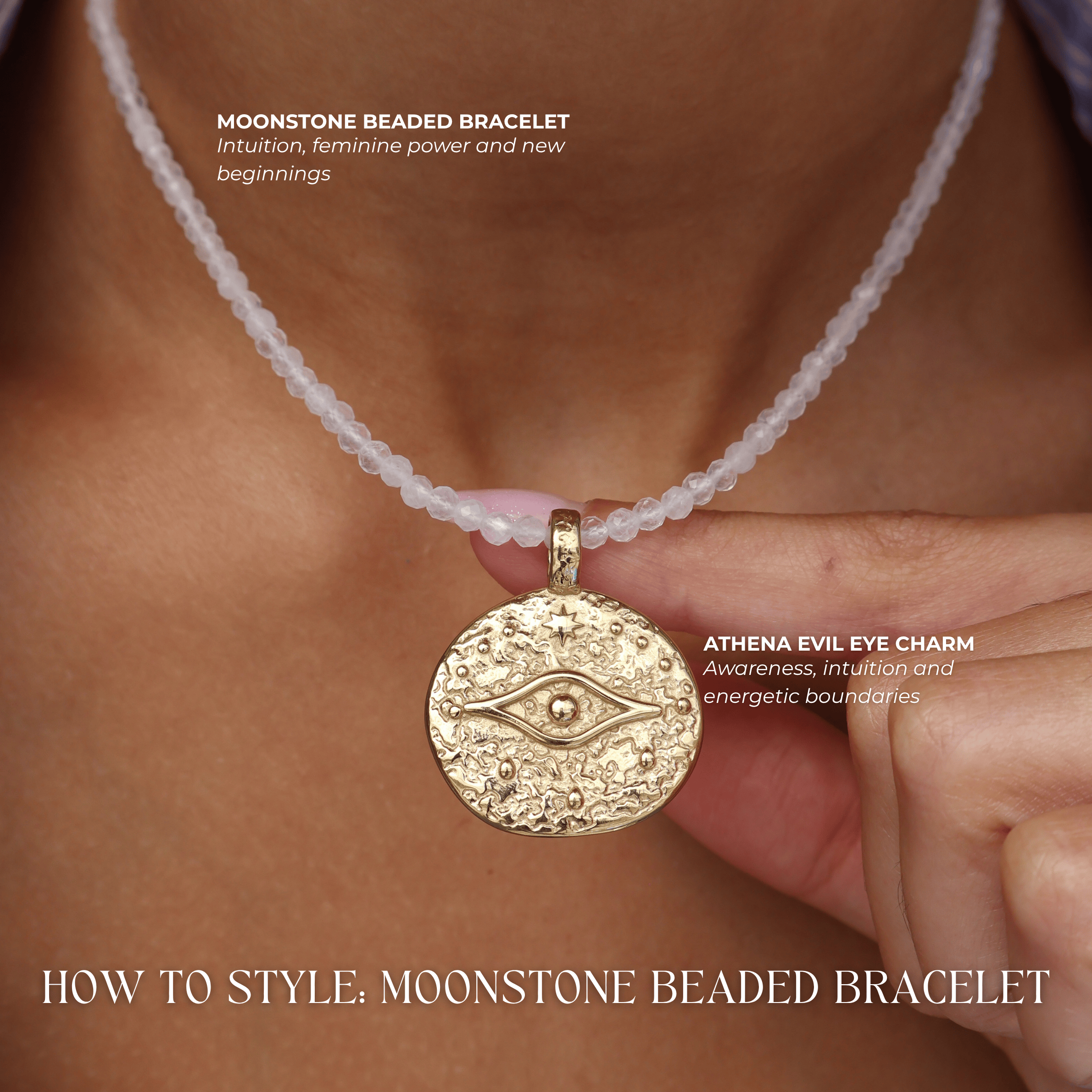 *Please note the waterproof Moonstone Beaded Necklaces do not include the metal spacer beads and is full Moonstone.