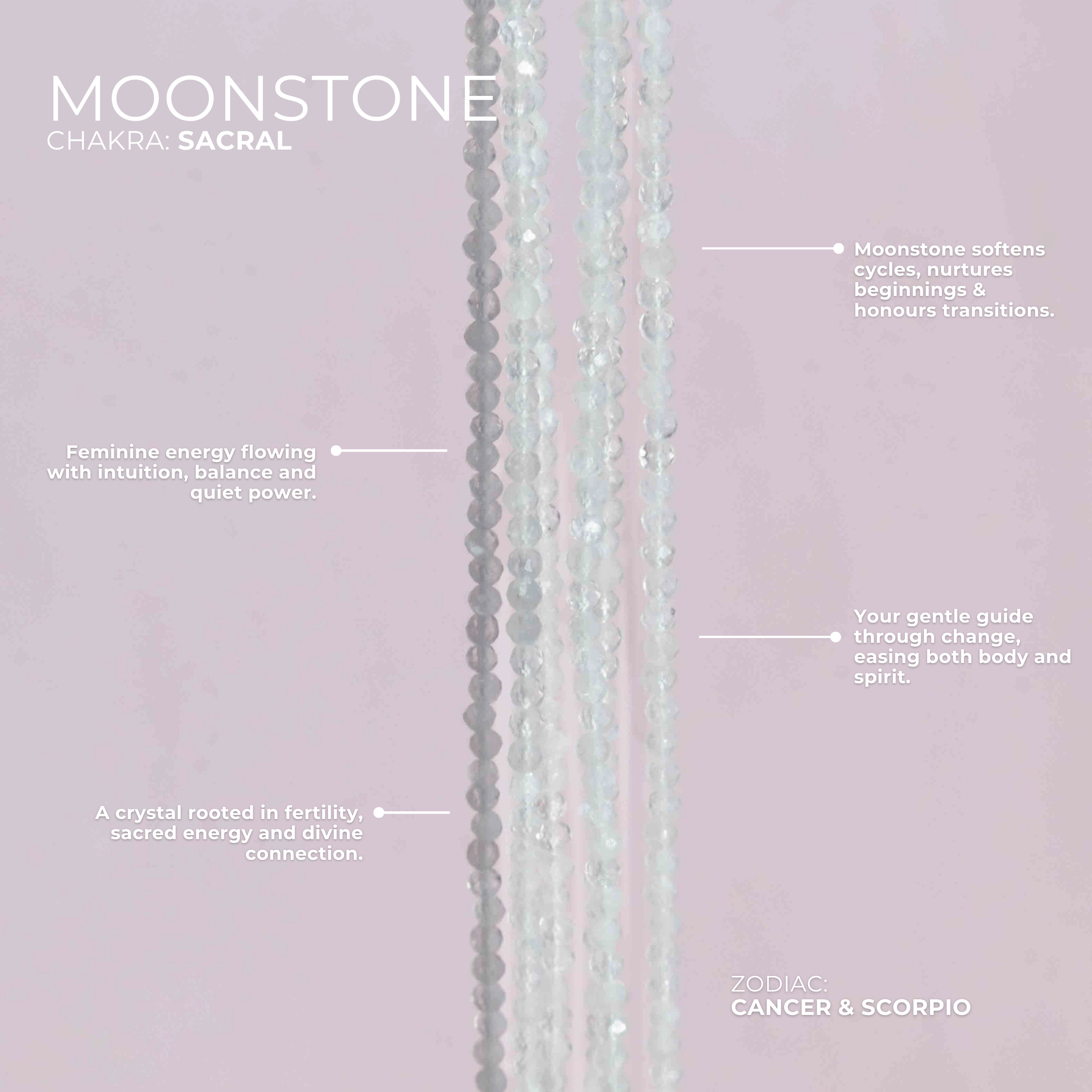 Moonstone is a mystical crystal deeply connected to cycles of change helping you navigate growth with softness wisdom and intuition.