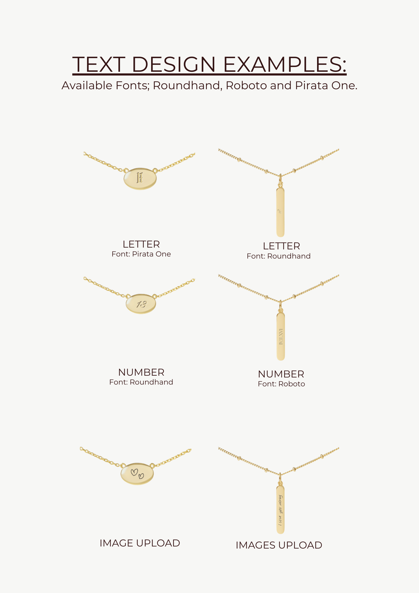 You can engrave simple line images on your jewellery, such as minimalistic designs or basic outlines. Highly detailed or shaded images may not engrave clearly.